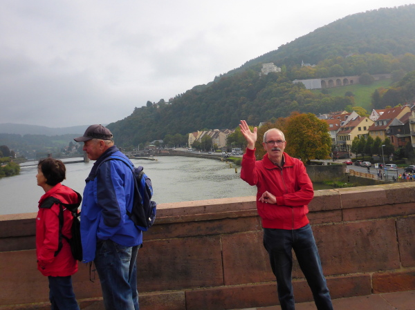 Wir laufen durch das Brückentor auf die Alten Brücke, links der Schuldturm für Zollsünder, rechts die Wohnung des Torwächters. Die Alte Brücke ist das meistabgebildete Motiv von Heidelberg, die Romantiker bewunderten die perfekte Einbettung in die Landschaft.