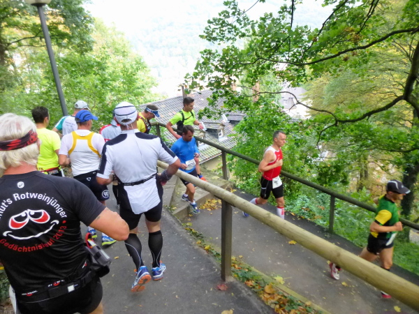 Von unserem Parkrundkurs werden wir auf einen Pfad gelotst, der zunächst moderat direkt zu Füßen der Wehrmauern entlang führt, um dann, erneut in engen Serpentinen, steil in Richtung Altstadt abzufallen. Das geht ja schon gut los!