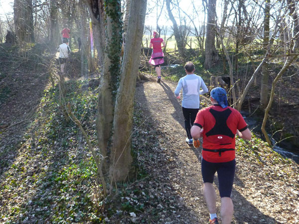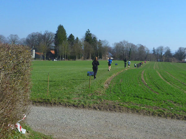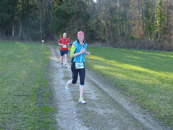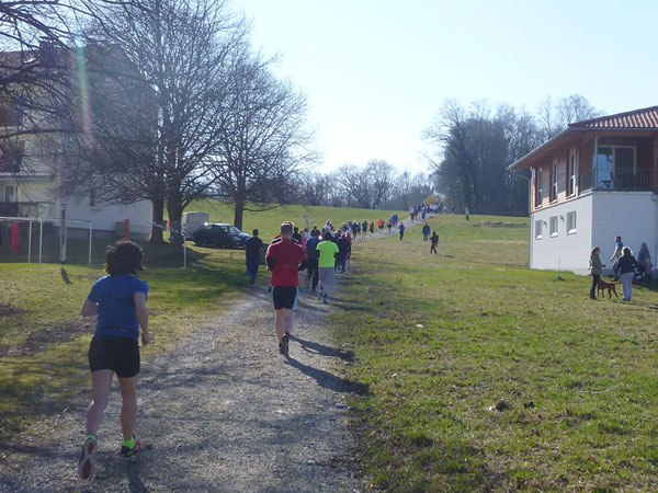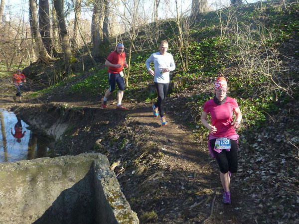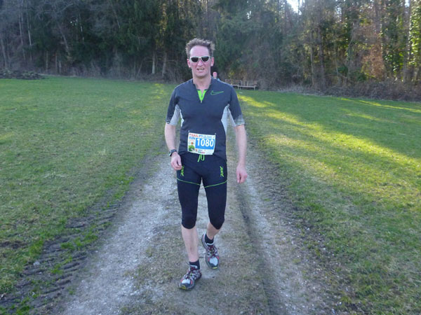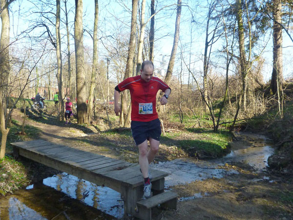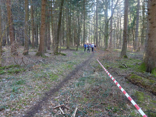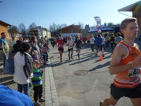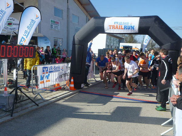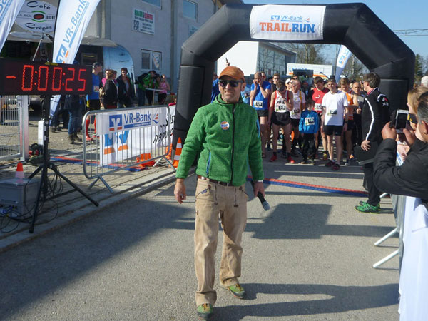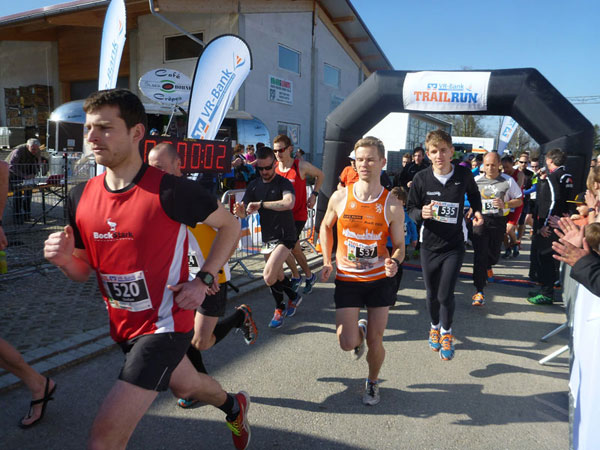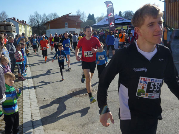 In zwei Minuten Abständen werden die Läufe kurz hintereinander gestartet, beginnend mit den Ein-Runden-Läufern und am Ende die Langstreckler. Im Sandwich der beiden Rennen geht es für mich pünktlich los. Die Zeiten werden genau genommen, per in die Startnummer integriertem Chip. Fast 250 Meldungen kann der Veranstalter für die drei Läufe vermelden. Das Läuferfeld ist gut gemischt, es sind alle Leistungsklassen vertreten, darunter mit Matthias Dippacher auch einer unserer besten deutschen Trailrunner, der den Lauf anscheinend als gutes Training ansieht.