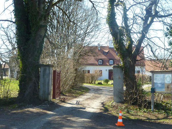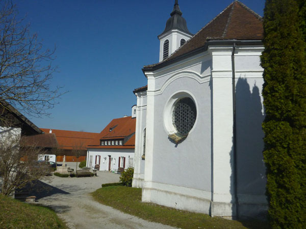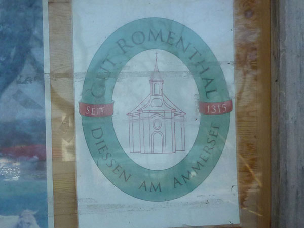 Nur der Einwilligung der Eigentümer ist es zu verdanken, dass wir überhaupt durch das Gut laufen dürfen. Romenthal gehörte ursprünglich zum Kloster der Augustiner-Chorherren von Dießen, die auch für den Bau der Rokokokapelle St. Anna verantwortlich sind, die wir direkt im Anschluss passieren. Der erste Kilometer ist hier auch schon erreicht und wir verlassen wieder das Anwesen.