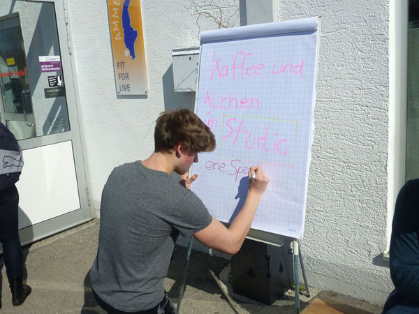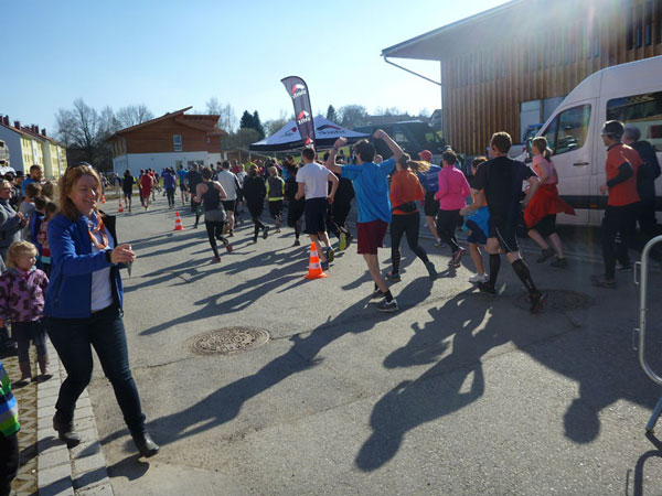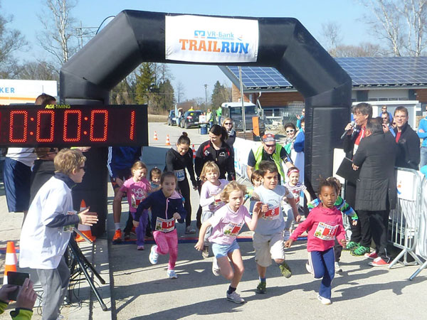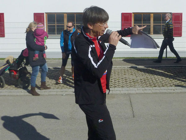 Bis eine halbe Stunde vor den Kinder-Starts kann man noch nachmelden. Wie mir scheint, machen heute außerordentlich viele davon Gebrauch. Vom Ammerfit-Studio führt ein Weg zum etwa 150 Meter entfernten Start- und Zielbereich. Moderiert werden alle Läufe von Peter Maisenbacher, ihn kennt man ja mittlerweile nicht mehr nur vom Fernsehen, sondern auch live als Moderator von vielen Laufveranstaltungen.