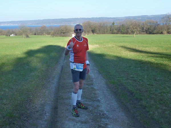 Die Zwei-Runden-Strecke ist mit 90 Meldungen am heutigen Tag die teilnehmerstärkste, so bleibt man nicht einsam auf der Strecke unterwegs. Nach dem Kreisverkehr geht es wieder hinauf auf den Höhenweg. Runde zwei verläuft für mich am angenehmsten, meine Muskulatur hat sich deutlich positiver entwickelt als erwartet. Ich kann jetzt etwas das Tempo erhöhen und freue mich richtig, noch dabei zu sein. Dreihundert Meter vor dem erneuten Zieldurchlauf werde ich vom Führenden der längsten Distanz noch überrundet.