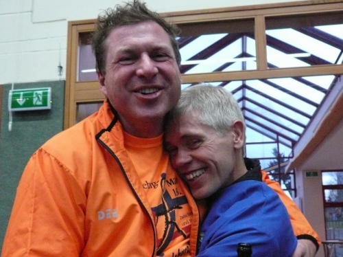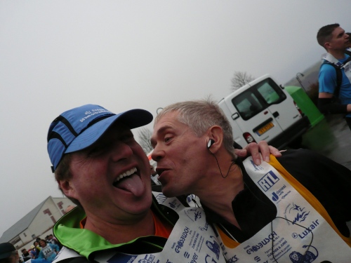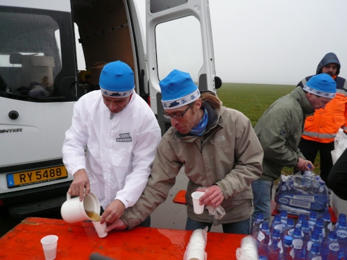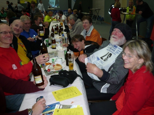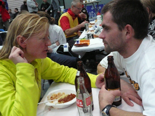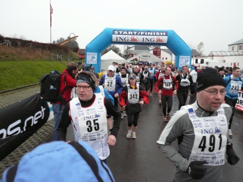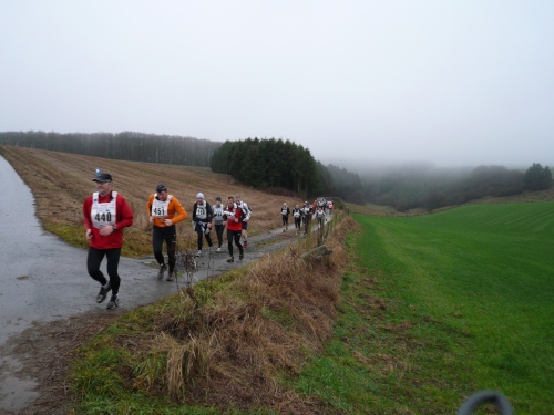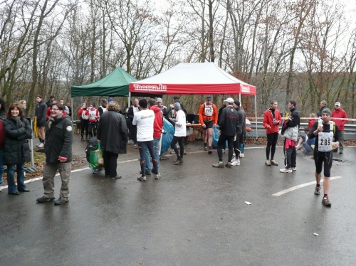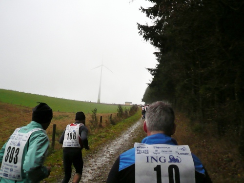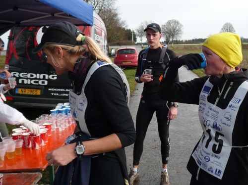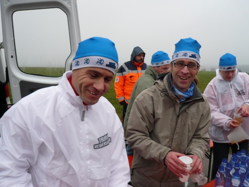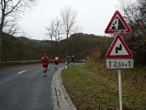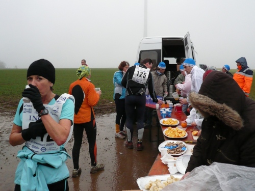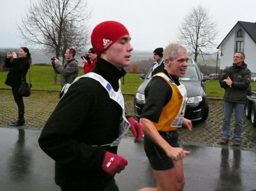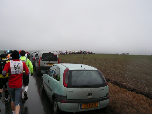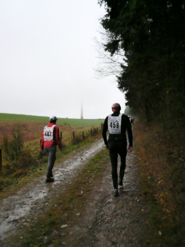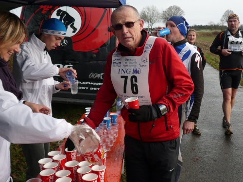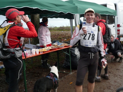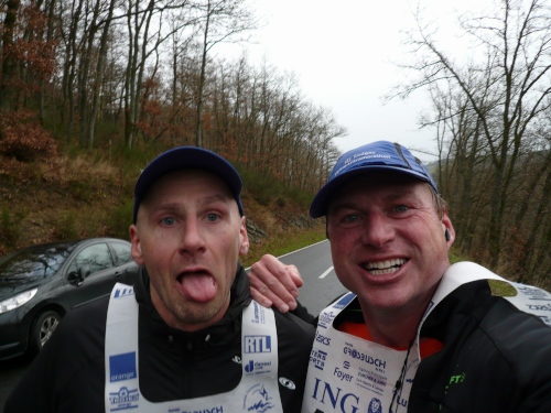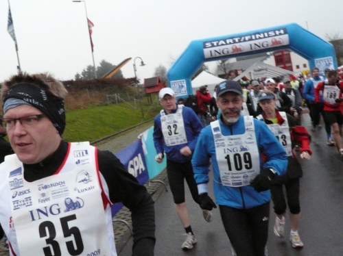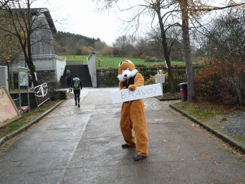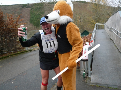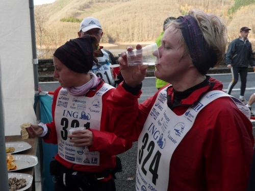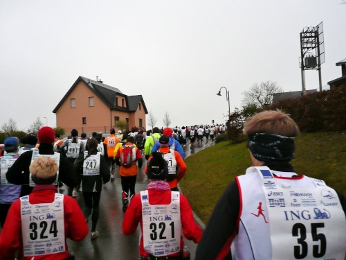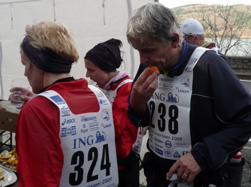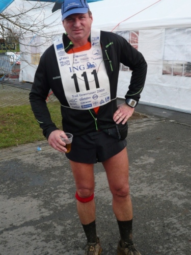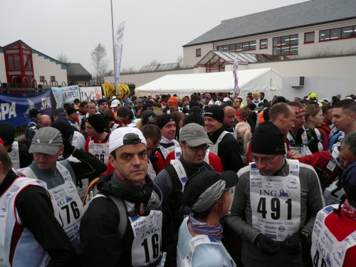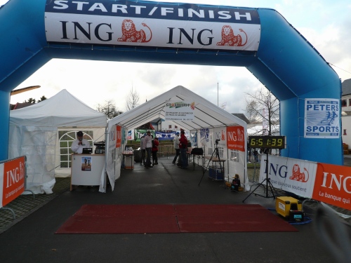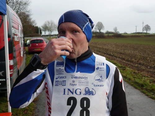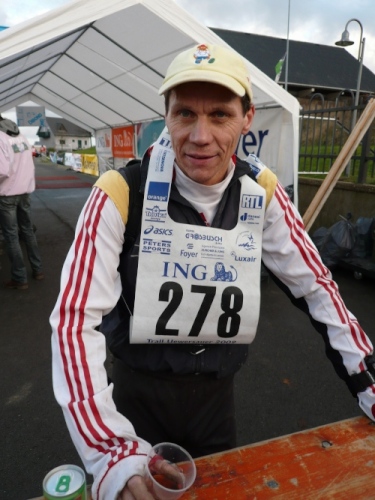 In Heiderscheid sehe ich mein halbes Auto. Auch das ist Matsch. Zum Glück hängt ein Zettel an der Windschutzscheibe: Ein Militärfahrzeug hatte es geknutscht. Kurz vor dem offiziellen Zielschluß erreiche ich mit Hängen und Würgen den Zielbogen.