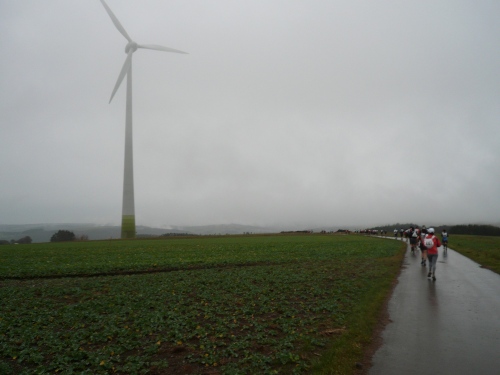 Was folgt ist unbeschreiblich. Die blütenweißen, weil wasserfesten Startnummern leuchten, doch darin hängen halbtote, verdreckte, müffelnde Zombies, die ihre zerfressene Beine durch den Dreck ziehen. An km 47 erinnere ich mich wieder: nochmal 150 Höhenmeter nach oben. Würdelose Art von Fortbewegung.