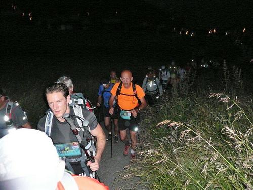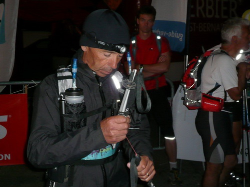 Kurz vor 5.00 Uhr werden die 350 Teilnehmer gebeten, sich in den Startbereich zu begeben, wo beim Eingang mit einem Handlesegerät der Chip erfasst wird. Registriert für große Taten stehen die expeditionsmäßig ausgerüsteten Wettkämpfer bereit. Keine Spur von Nervosität und Hektik. Es reicht allemal noch für ein paar Worte hier, ein paar Worte da.