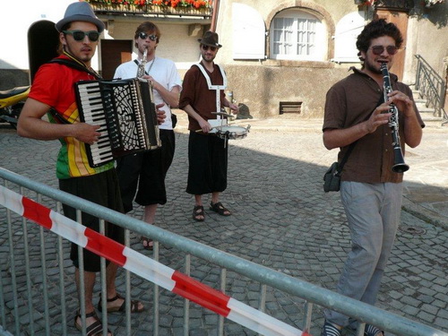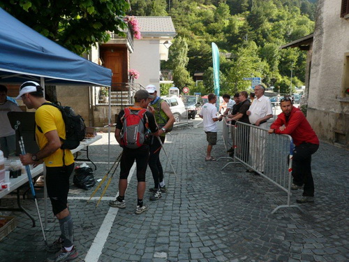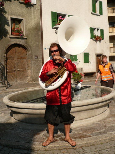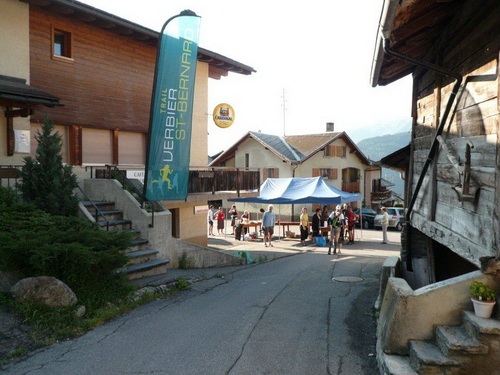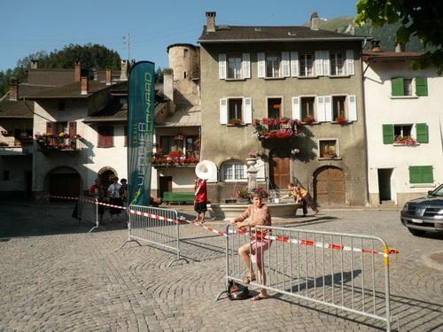 Den Feldern entlang nähern wir uns Sembrancher, wo im Dorfkern der nächste Verpflegungsposten aufgebaut ist. Während ich mich verpflege und die Trinkblase auffülle, lausche ich den rassigen Klängen einer jungen Musikertruppe. Ihre Klänge tönen nicht landestypisch, ich tippe auf osteuropäische Musik. Ich kenne mich auf diesem Gebiet weniger aus als beim Laufen, ich meine aber, auf meinen Reisen in jene Länder ähnliche Harmonien bei Klezmer- und Romakapellen gehört zu haben.