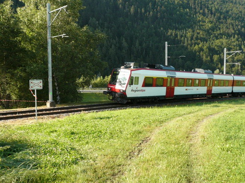 Es geht bis zum Talgrund, doch zuvor müssen noch die Geleise der Eisenbahnlinie überquert werden. Weil in dem Moment gerade ein Zug kommt, muss ich warten. Vom Lokführer werde ich mit dem Signalhorn erst vor der Gefahr gewarnt, dann freundlich gegrüßt.