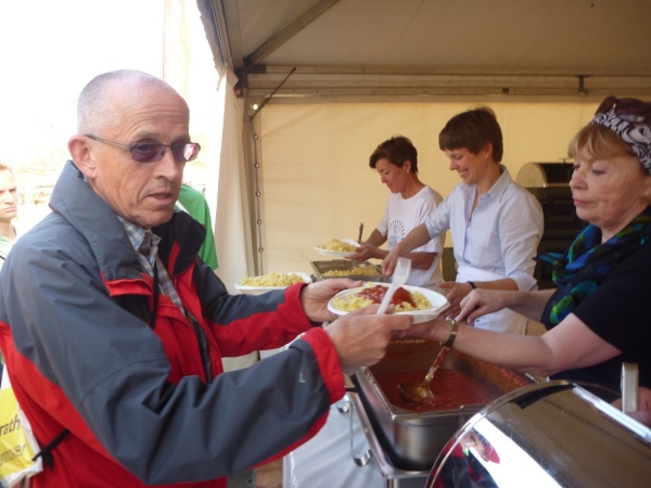 Bei den ganz großen Läufen stellt er sich den Wecker auf 15 Minuten und legt sich am Straßenrand zum Schlafen. Nach dem Aufwachen gibt’s Kuchen. Er hat oft verknüllten Kuchen bei seinen Läufen dabei. Dann erzählt er von seinem Lieblingslauf: Dem Grand Union Canal (220 km). Für die Teilnahme muss man eine witzige Bewerbung schreiben. Es gab dieses Jahr eine einzige Bewerbung, die gleich rausfiel: Meine! Es gilt nämlich, im Bewerbungsformular bei „sex“ ein „m“ oder „w“ anzukreuzen. Meine Ausführungen trafen leider nicht annähernd den Geschmack der Insulaner, und ein „yes“ war nicht ankreuzbar.