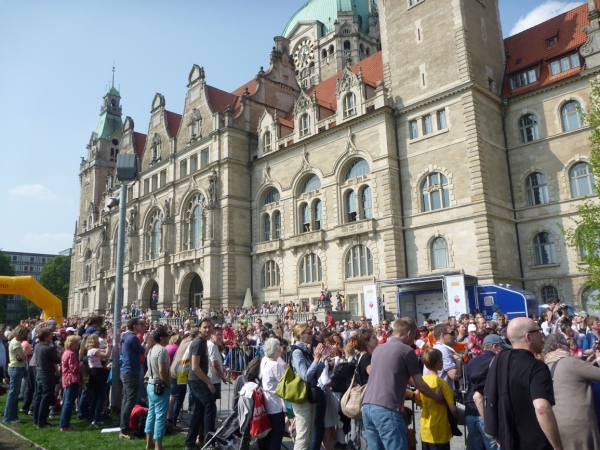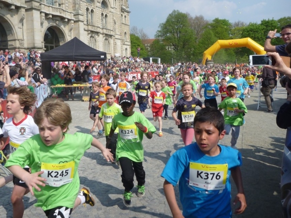 Die Kinderläufe beim TUI Marathon in Hannover sind legendär, Startplätze schon lange vorher ausgebucht. Wo ist Mutti? Die Kleinen wetzen los, wie wilde Rennpferdchen, die Mütter bleiben im Staub zurück. Wer sich anschließend sucht: An der Cola-Flasche ist Treffpunkt der staubigen Eltern. Manchen Kindern haben die Eltern ihre Handynummer auf den Arm graviert. Es ist eine unglaubliche Stimmung, vor der grandiosen Kulisse des Neuen Rrathauses stehen die Zuschauer in mehreren Reihen und Etagen. Jeder Startblock wird von einem Olympiasieger ins Rennen geschickt. Da möchte man nochmals Kind sein!