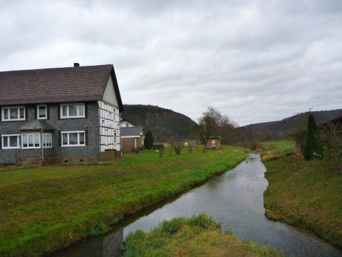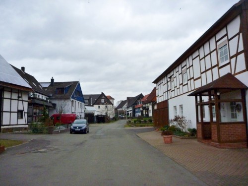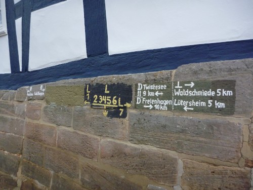Wir duchlaufen das 800 Jahre alte Braunsen (Backhaus, Kirche). Kniebrecherweg“ steht auf dem Strassenschild. Na prima. Aber dann biegen wir in den Lefringshäuser Weg zum Twistesee ein.