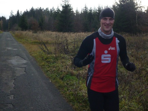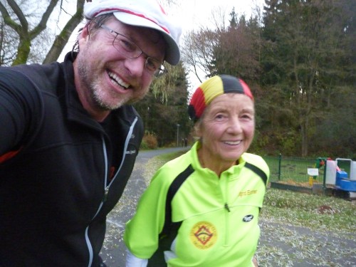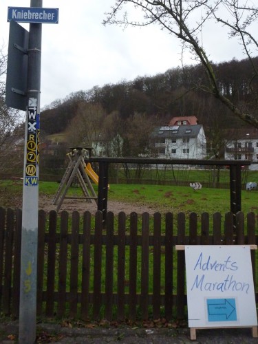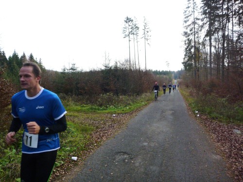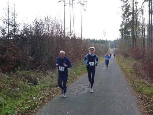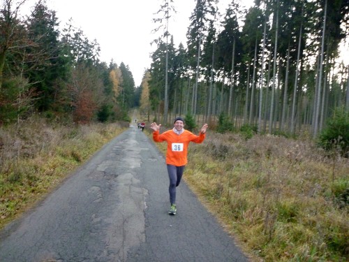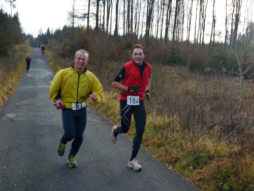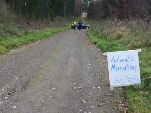 Klar, der Weg ist noch lang bis zum Ziel. Christoph läuft mir entgegen, er ist schon lange im Ziel gewesen, ihm war kalt und er läuft nun Ulla entgegen.