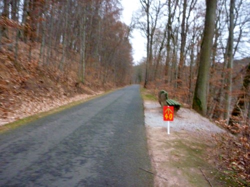 Begegnungstück, Entgegenkomende haben km 25 hinter sich, endlich mal Gelegenheit ein paar Fotos zu schiessen. Waldschmiede bei Volkhardinghausen, von nun an geht es abwärts. An der Franzoseneiche wieder eine Verpflegungsstation. Hier haben unsere westlichen Nachbarn vor hunderten von Jahren jahrelang so ne Art von Picknick abgehalten um die Leute in Landau zu bespassen, also bleibe ich auch ein bißchen an dieser Verpflegungsstation. Ich habe Zeit, genieße den ersten Advent mit kalter Cola, warmen Tee und Keksen.