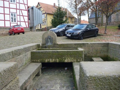Kurz auf die Strasse Richtung Volkhardingshausen dann steil den Berg nach links hoch. Ewig lange diese Geraden durch den Wald. Ein vergilbtes Schild, dort war im 13.Jahrhunderrt ein Hofgut, man hatte es ausgegraben. Ein wenig geht es aufwärts und ewig weit, unterbrochen von Verpflegungsstationen, es sind genügend. Meistens Kinder die aushelfen, bißchen unmotiviert, aber die stehen auch schon sehr lange. Die, die um 10 Uhr gestartet sind, wurden ja auch schon versorgt.
