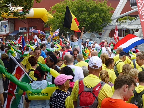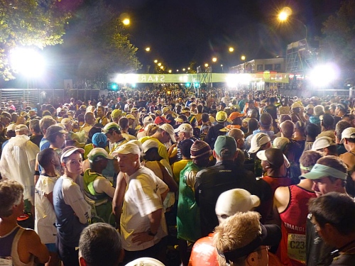Der Auflauf von immerhin insgesamt etwa 25.000 Ultra- und Halbmarathonstartern ist wahrlich beeindruckend. Dank guter Ausschilderung ist es aber kein Problem sich zurecht zu finden. Zuvorderst liegen die fünf Startblocks des Halbmarathons, dahinter die Blöcke A bis E für die Ultraläufer. Wo man sich einreihen muss, wurde bereits gemäß der Qualifikationszeit bei der Anmeldung festgelegt. Die große Masse startet jeweils im letzten Block.