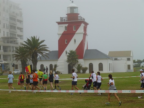 Unmittelbar vor dem Leuchtturm verlassen wir die Küste und zweigen ab in den Green Point Park, eine der größten Grünanlagen der Stadt. Man merkt, dass der Park noch nicht allzu lange sein heutiges Gesicht hat. Die Bepflanzung ist noch jung, alles wirkt noch sehr angelegt. Unser Weg führt mitten durch den Park, dessen Hauptattraktion das Stadion ist, dem wir uns, nun von der anderen Seite, wieder annähern. Entlang der an den Park angrenzenden Straßen geht es sodann schnurstracks zurück gen Waterfront und vorbei am Alfred Bassin ins Ziel. Damit ist der Friendship Run aber noch nicht zu Ende. Denn alle Teilnehmer sind nach vollbrachter Tat zum gemeinsamen (zweiten) Frühstück mit Rührei und Speck, Kaffee und Muffins in der Fishermans Tavern eingeladen. Ein netter, gelungener Auftakt, auch wenn der Wetter nach dem herrlichen Sonnenschein der Vortage nicht so recht mitgespielt hat.