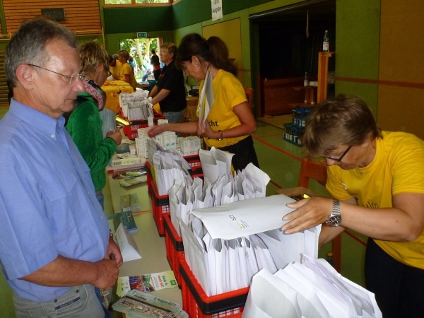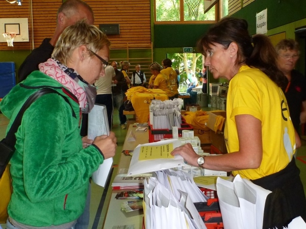 In der Lix-Hall gibt es die Startunterlagen. In Sekundenschnelle hast du Startnummer, T-Shirt, Schuhbeutel und weitere Gaben empfangen. Im oberen Hallenbereich läuft bereits die Spätzles-Party. Ein Gutschein liegt den Startunterlagen bei. Die Pasta werden mit Braten- oder Tomatensauce gereicht. Wer noch ein Getränk haben will, löhnt einen EUR und bekommt dafür Wasser, Isogetränk oder bleifreies Radler. Ein Teil der Halle ist für eine Übernachtung oder für eine Ruhemöglichkeit eingerichtet. Wer mit Wohnmobil oder Zelt unterwegs ist, hat sich bereits im Umfeld des Parkplatzes eingerichtet.