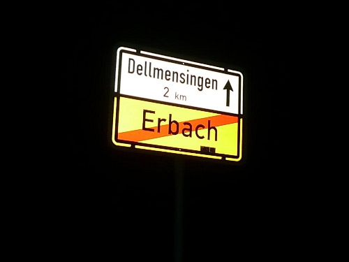 Nach dem Ortsausgang haben wir nach Norden einen Blick auf das beleuchtete Ulm. Nur das Münster sehe ich nicht. Ich habe gehört, dass da die Beleuchtung in den Nächten abgeschaltet wird. Die 45 Höhenmeter, die wir uns vorher hart erarbeitet haben, verlieren wir auf kurzem Wege.