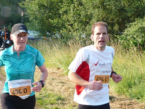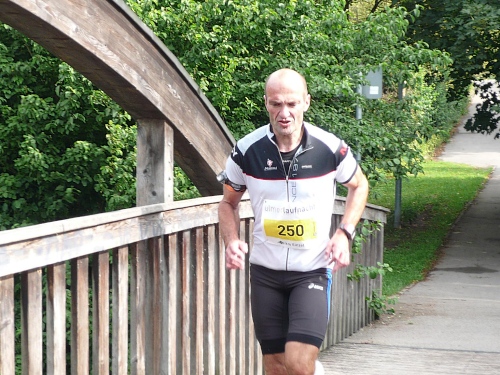 Ich überquere später die Iller und laufe weiter Richtung Neu-Ulm. Jetzt sind wir kurzzeitig in Bayern, denn die Iller ist die Landesgrenze. Nach den Illerbogen finden wir die letzte V-Stelle. Die Helfer schauen verdutzt, weil ich ohne Verpflegungsaufnahme durchrausche. Wir überqueren auf der Adenauerbrücke wieder die Donau und sind wieder im Ländle angekommen.