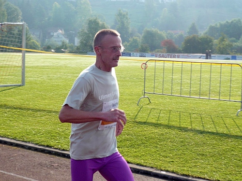 Jetzt bin ich noch deutlich unter fünf Stunden geblieben. Ich glaube, ich bin die zweite Hälfte wieder einmal schneller gerannt. Ich verpflege, mache nebenbei von den weiterlaufenden Hundertern einige Bilder und kann auch meinen zweiten Plan erfülle und den Start der zweiten Gruppe der 50-Kilometer-Läufer beobachten. Der Fahrdienst zurück nach Blaustein ist optimal. Keine Wartezeiten. Die Kleinbusse fahren, sobald diese besetzt sind. Bei der Rückfahrt sehe ich in der Innenstadt im Morgengrauen ein Thermometer: 8 Grad, brrr.