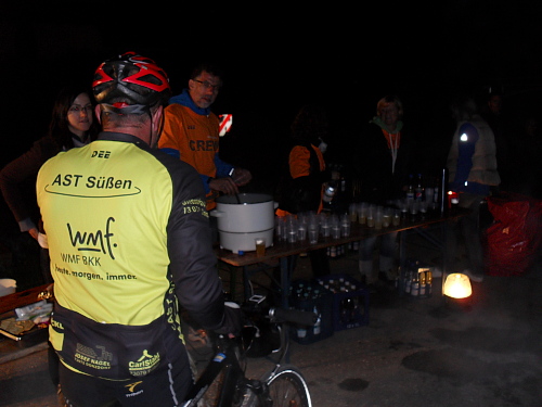 Nach der Anmeldung und Abgabe meiner Verpflegungspacks ging‘s dann ohne Umschweife zur Settele Spätzleparty, die hier im Startgeld enthalten ist. Gut gestärkt war ich dann bereit für das Briefing um 21 Uhr, das man sich auf jeden Fall anhören sollte, da hier gute Hinweise zur Streckenführung und zur Auszeichnung der Strecke gegeben werden. Besonders gefiel mir der Hinweis, wenn man das Schild mit 101km sehen würde, wäre man doch etwas zu weit gelaufen.
