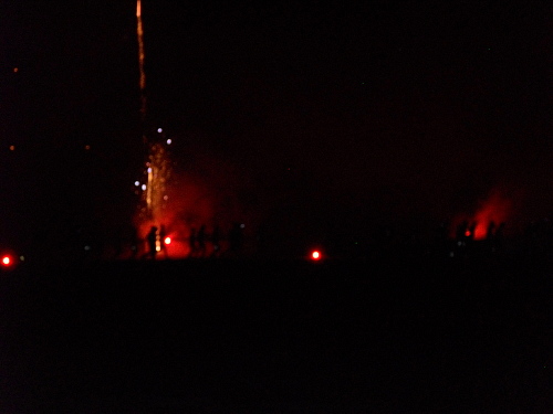 Das Wetter ist ideal: Am Start 12 Grad und trocken, nach 200 m sind es dann knapp 2.500 Grad, denn da laufen wir an den Bengalischen Feuern vorbei, natürlich mit Sicherheitsabstand. Nachts ging es dann bis auf 8 Grad runter, bevor es dann wieder auf gut 24 Grad hochging. Es blieb auch die ganze Zeit trocken.