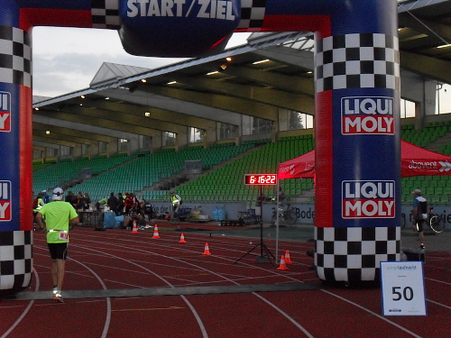 Zum zweiten Male ist große Verpflegung angesagt. Groß ist wörtlich zu nehmen, denn Brötchen, Kaffe und Bier gehören auch dazu. Nach gut 6 Stunden eine willkommene Abwechslung für mich. Für die 50 km-Finisher und die Staffelläufer ist hier das verdiente Finale. Hier besteht dann auch die Ausstiegsmöglichkeit für die 100er, die dann doch nicht bis zum Ende durchlaufen können oder wollen. Andererseits ist hier auch ein spezieller Start um 4 Uhr für die zweite Gruppe von 50 km Läufern, die diesen Teil der Strecke mal laufen möchten. Bei mir ist alles im Plan, also weiter so.