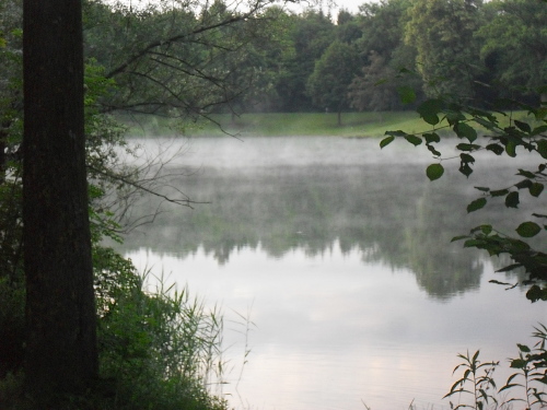 Nach einem Schotter- und Grasweg und der Durchquerung des Klosterhofs liegt bei km 62 der nächste VP. Weiterhin ansteigend führt die Route westwärts. Etwas später ist links ein Blick auf das morgendliche Donautal möglich. Nach einem wenig welligen, dafür aber kieseligen Waldweg geht es auf der Hochfläche südwärts auf einem gut zu laufenden Schotterweg. Im Hintergrund ist bei guter Sicht das morgendliche Ulm zu sehen. Abzweigend nach rechts fällt in Thalfingen die Straße mitunter recht steil ab. Bei der Überquerung einer verkehrsarmen Straße wird die nächste Wasserstelle bei km 66,5 erreicht.