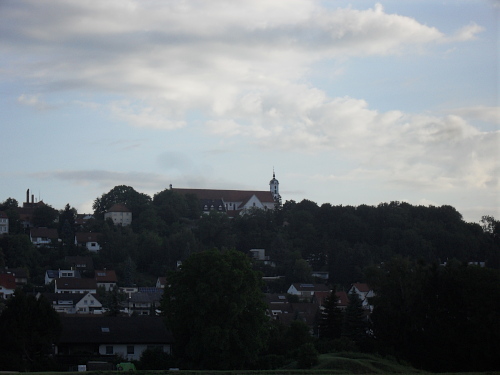 Schon vor Unterkirchberg fällt das Gelände immer steiler ab. Nach der Durchquerung des Ortes taucht recht unverhofft der dritte Fluss, die Iller auf. Der 147 Kilometer lange Fluss entsteht im Oberallgäu und mündet kurz vor Ulm in die Donau. Diesen Punkt werden wir kurz nach km 47 passieren. Nach einigen Kilometern auf einem Schotterweg führt eine Abzweigung in Richtung Wiblingen. Hier zweigt die Route erneut links über einen kleinen Steg auf kürzestem Weg zum Kloster Wiblingen ab. Eine schmale Brücke muss überquert werden. Da ist es schon gut, dass die Lampe dabei ist. Nach ein paar Metern laufen wir dann an die Klostermauer heran. Im Innenhof des Klosters Wiblingen ist eine weitere V-Stelle eingerichtet . Das Kloster ist das bekannteste barocke Bauwerk der Benediktiner aus dem Jahr 1093. Die Klosterkirche wurde 1993 von Papst Johannes Paul II zur Basilika minor erhoben. Ein Teil des Klosters wird heute als Altenheim benutzt.