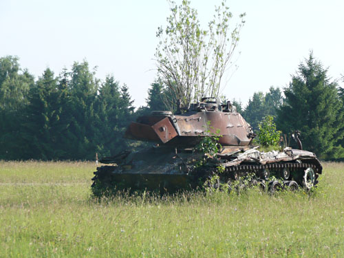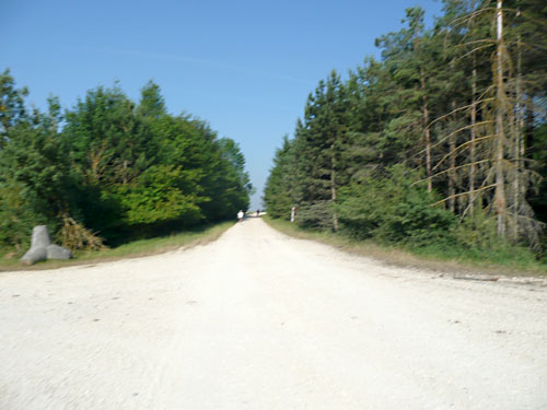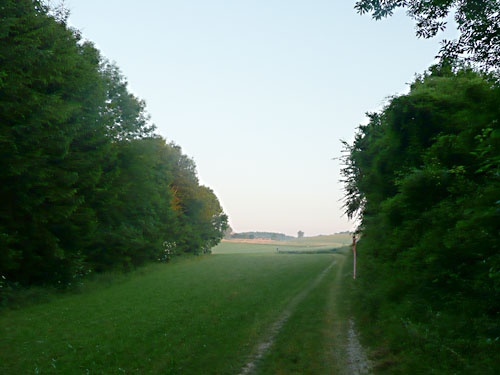 Den VP am Feuerwehrhaus in Lehr passierten wir zügig. Gut einen km später folgte die Mördersenke. So bezeichnete ein Teilnehmer der Debütveranstaltung den kleinen Taleinschnitt nördlich von Lehr. Der gegenüberliegende Aufstieg zum Truppenübungsgelände Lerchenfeld sieht nach 85 gelaufenen km ja auch nicht besonders einladend aus. Uli, mein treuer Radbegleiter, durfte mal wieder aus dem Sattel und zeigen, was er radtechnisch noch so alles drauf hat. Auch hier lag der Spaßfaktor nicht auf meiner Seite, denn längst machte sich das flotte Anfangstempo höchst unangenehm bemerkbar.