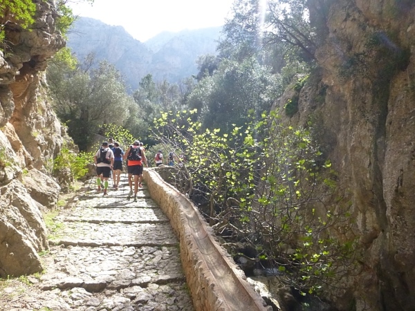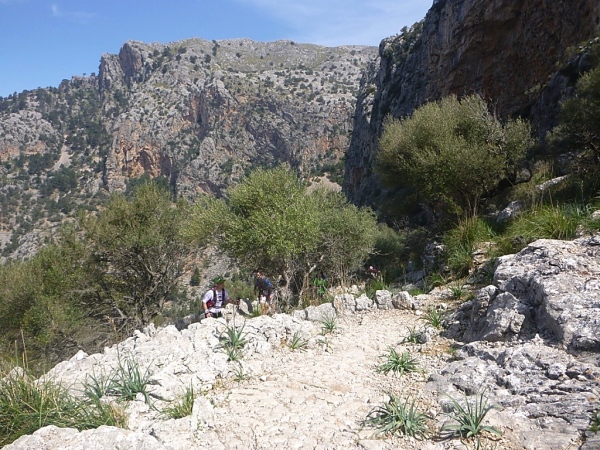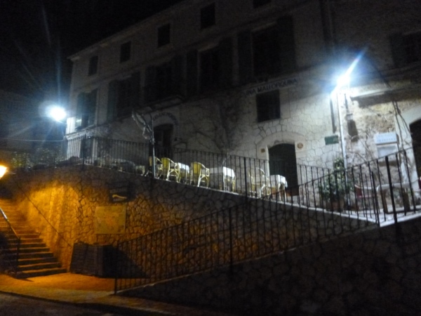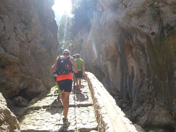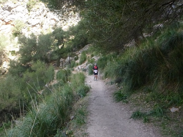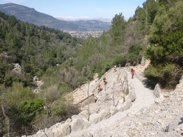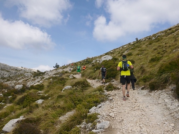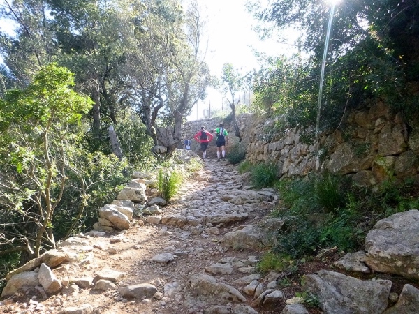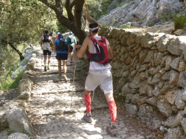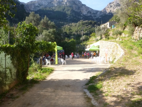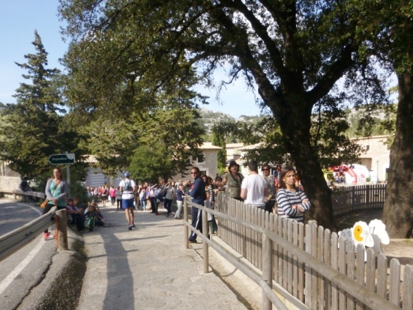 So gab es viel Abwechslung auf der ganzen Strecke, mal genoss ich die Einsamkeit in den Bergen und dann wieder das geschäftige Treiben in den Ortschaften mit den Verpflegungsposten. In Sóller hatte ich bereits mehr als die Hälfte des Ultratrails gemeistert. Zuerst waren die engen Gassen menschenleer, doch dann säumten immer mehr Zuschauer den Straßenrand. Mal links, mal rechts musste ich durch die gepflasterten Straßen laufen. Wo war nun endlich die Verpflegung, ich hatte Durst und war auch etwas hungrig. Endlich wies mir ein Streckenposten den Weg zwischen den vielen Zuschauern in einen Hof, wo ich mich stärken konnte. Nach diesen vielen Kilometern der Einsamkeit bis Sóller (VP km 68,1) war ich mit dem Lärm in den engen Gassen und den vielen Menschen fast überfordert und wünschte mich wieder schnell in die Berge. Doch mir war auch bewusst, dass ich hier die Gelegenheit hatte, meine Vorräte aufzufüllen, denn die nun folgenden 10 Kilometer mit mehr als 800 Höhenmetern sollten auf den steilen Pflasterwegen sehr anstrengend werden. Ständig spürte ich die Steine, die sich durch meine Schuhe in die Fußsohle bohrten, ganz egal wie klein oder groß er war. Okay, da musste ich nun durch und da es sowieso steil bergauf ging, konnte ich langsam gehen und mich etwas schonen.