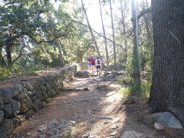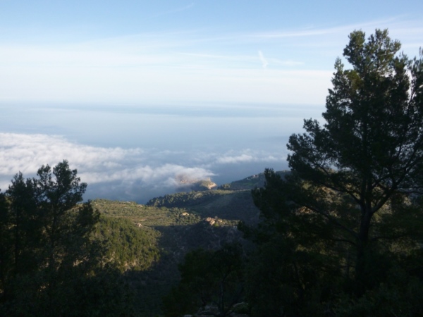 Eigentlich führte doch die Strecke entlang der Küste und hinab bis zum Meer. Komisch, aber von alldem merkte ich nichts, auch eine frische Brise vom Meer her war nicht zu spüren und ein Meeresrauschen nicht zu hören. Die Nacht war angenehm kühl zum Laufen. Es war still, nur das Atmen war zu hören und die Schritte auf dem losen Geröll. Bis zur ersten VP in Estellencs (km 18,7) schlängelte sich der Weg irgendwo durch die Dunkelheit meist über enge Wege. In Estellencs konnten wir dann die anmutigen Steinhäuser und die enge Straße im Laternenlicht bewundern, so auch in Banayalbufar und Port des Canonge, der zweiten VP bei km 36,6. Auf dem Weg nach Valldemossa brach dann langsam der Tag an. Zuerst war das Vogelgezwitscher zu vernehmen und dann färbte sich der Himmel in allen Farben, bis es dann endlich hell war. Die Stirnlampe wurde überflüssig und verschwand im Laufrucksack, stattdessen zog ich meine Sonnenbrille auf.