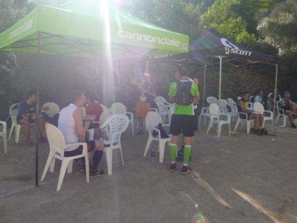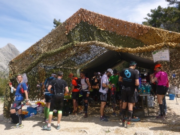 Auf der Passhöhe angekommen, wurde ich mit einem gigantischen Ausblick über die höchsten Gipfel des Tramuntanagebirges belohnt, unter anderem den Puig Major mit seiner Sternwarte auf dem Gipfel. Diesen höchsten Berg im Tramuntana würde ich noch eine ganze Weile sehen können, allerdings ist er militärisches Sperrgebiet, so dass wir nur daran vorbeilaufen. Nicht nur die Berge sondern auch die beiden Stauseen kurz vor Cúber zogen meinen Blick an. Entlang des Stauseeufers folgte ich fast flach dem Weg, der an der Asphaltstraße endete. Die VP Cúber (km 80,3) befand sich dann noch gute 500 Meter weiter auf der anderen Straßenseite. In Cúber hielten sich viele Läufer auf und bedienten sich an den Nudeln mit Soße oder auch am Reis mit Olivenöl. Ich hatte es irgendwie eilig und wollte weiter, also schnell etwas essen und trinken und noch etwas Süßes zum Nachtisch und dann verließ ich schon wieder diesen Verpflegungsposten.