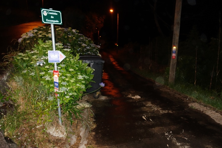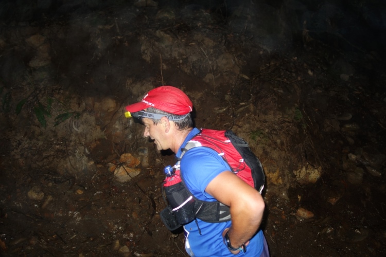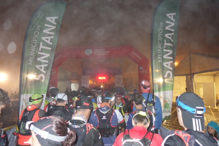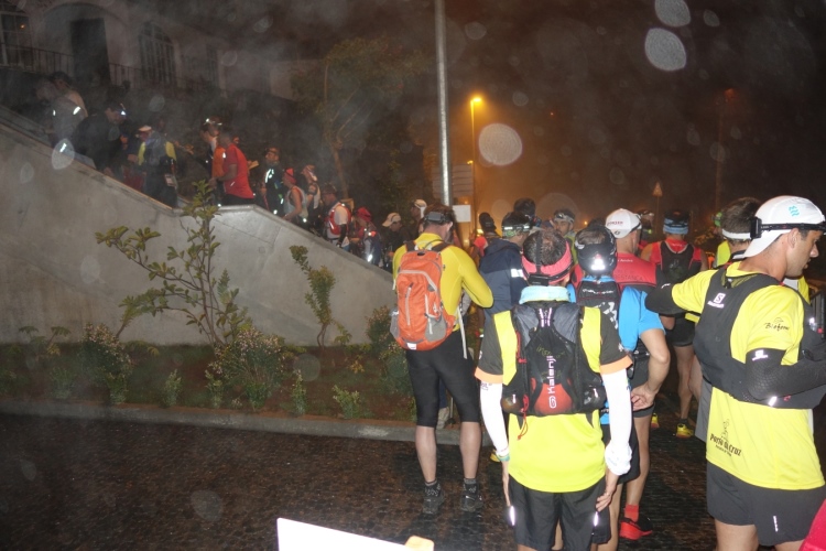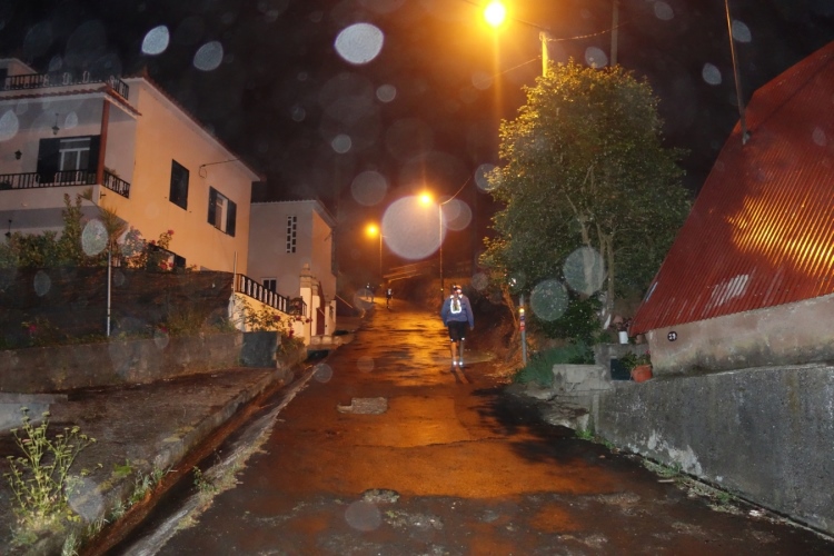Es ist noch dunkel und alle laufen mit Stirnlampe. Rasch geht es unter dem Applaus der wenigen Zuschauer aus Santana hinaus. Ein Polizist sichert eine Straße. Ich finde mich bald am Ende des Feldes wieder. 167 Starter sind auf der Strecke, von denen bin ich der Älteste. Der Laufweg ist mustergültig markiert. Die blau-weiß-roten Fähnchen leuchten im Dunkeln und sind gut zu erkennen.
