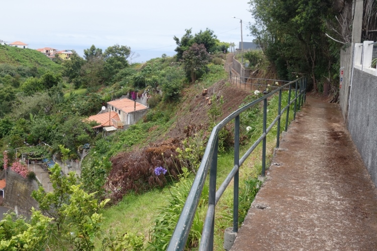 Ich stapfe weiter aufwärts. Und da ist es auch schon passiert. Ich bin einen Moment unaufmerksam, rutsche aus und schon liege ich auf dem Boden. Das linke Knie ist angeschlagen, aber ich kann weiterlaufen. Das soll mir eine Warnung sein. Ausrutscher können hier im Gelände auf Madeira unangenehme Folgen haben.