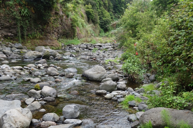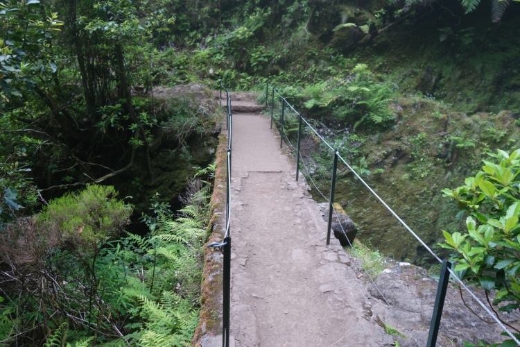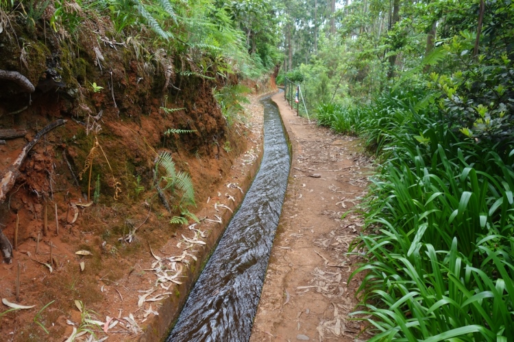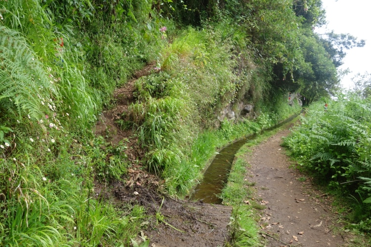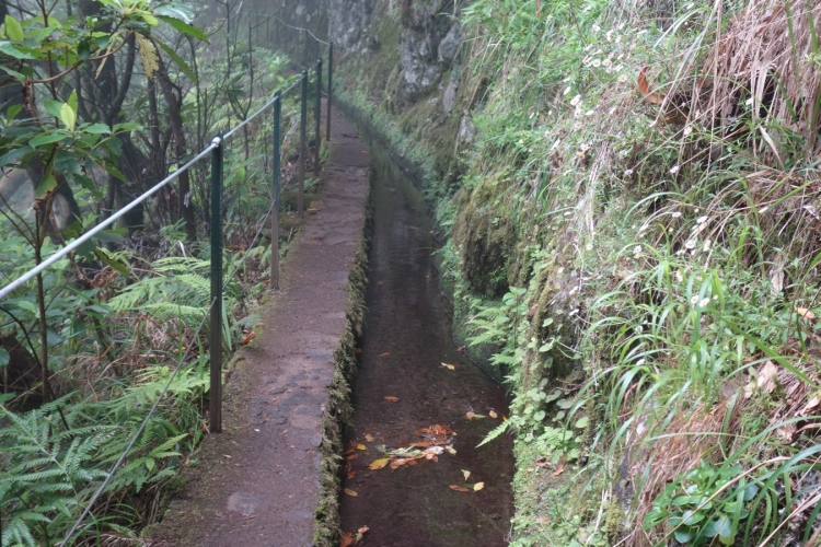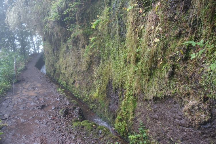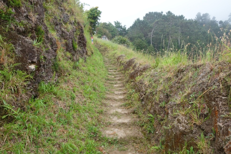 Ich komme wieder in die Wolken und es fängt zeitweise wieder leicht an zu nieseln. Aber es ist kein richtiger Regen. So geht es. Ich laufe durch das Vale da Lapa. Vorbei geht es am Posto Florestal. Die Strecke ist weiterhin sehr abwechslungsreich und es macht unverändert Spaß, auch wenn ich schon ziemlich kaputt bin. Aber Queimadas hat eine Anziehungskraft, die sich noch steigert, als ich auf die Levada treffe.