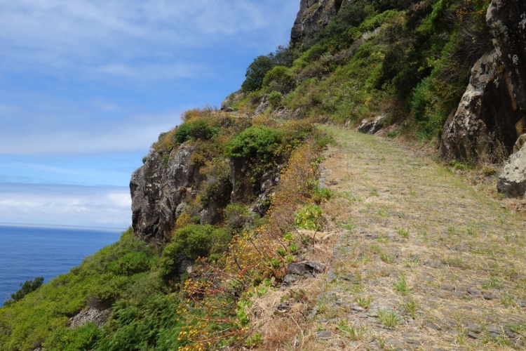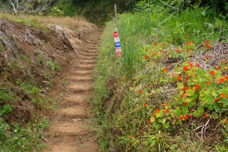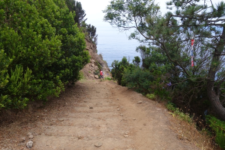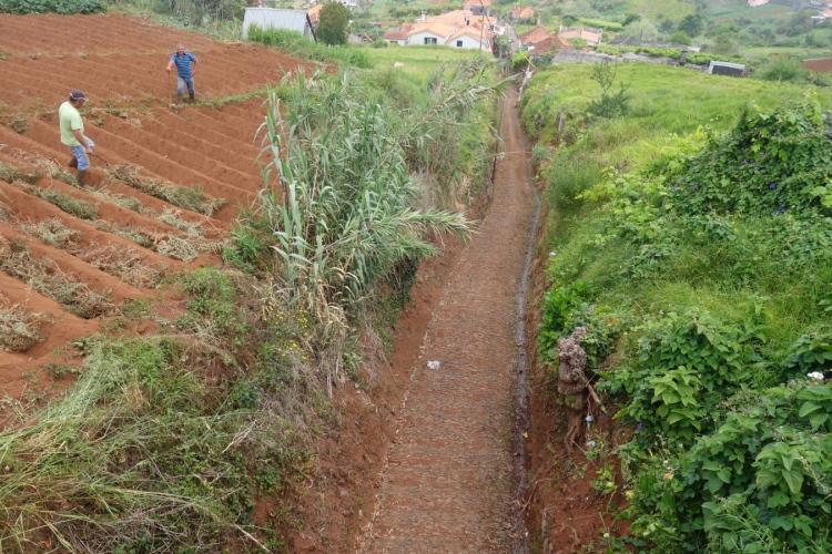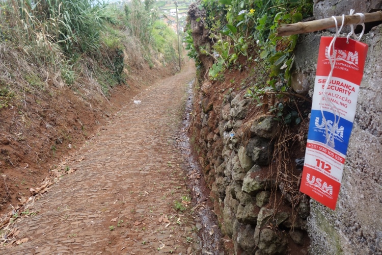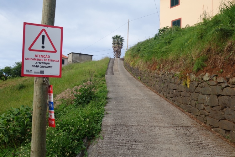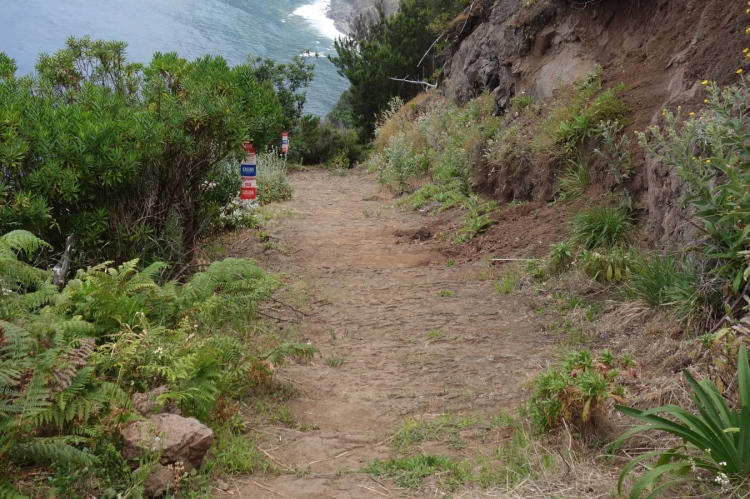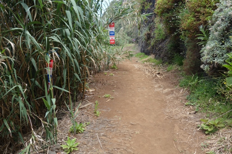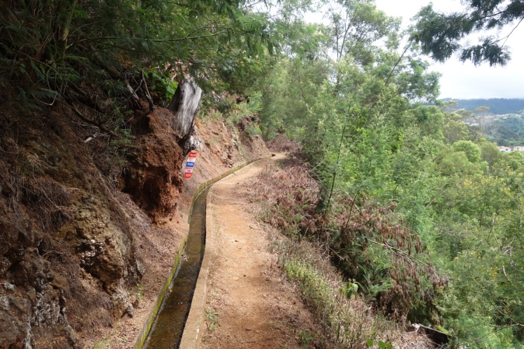 Natürlich sind auch wieder Stufen zu laufen, eine kleine Levada taucht auf und es sind auch noch einige Meter aufwärts zu bewältigen. Und ich schaffe es, mich trotz bester Markierungen zu verlaufen. Dabei habe ich jedoch ein Riesenglück. Zwei Arbeiter bemerken meinen Irrtum und weisen mich zurück auf den richtigen Weg. So hab ich nur gut 100 m zusätzlich absolvieren müssen. Puh, Schwein gehabt. Danke!