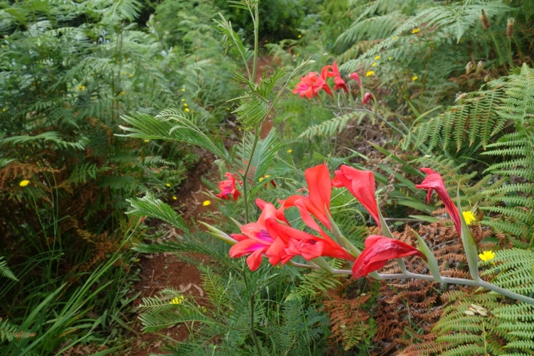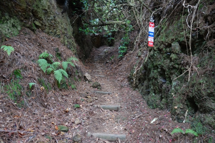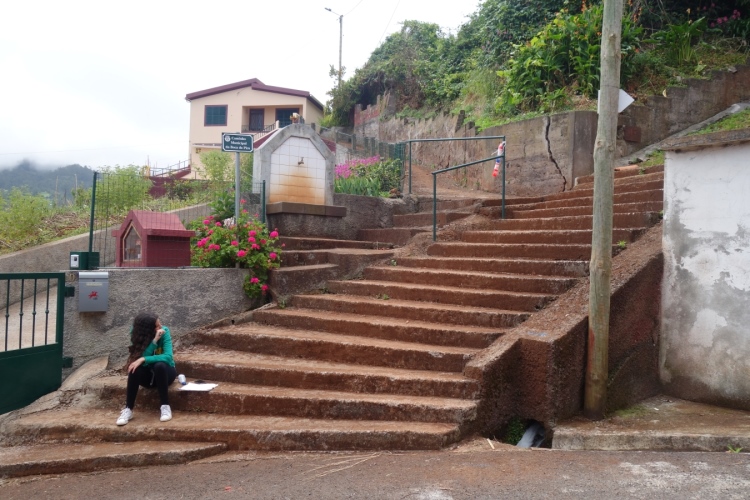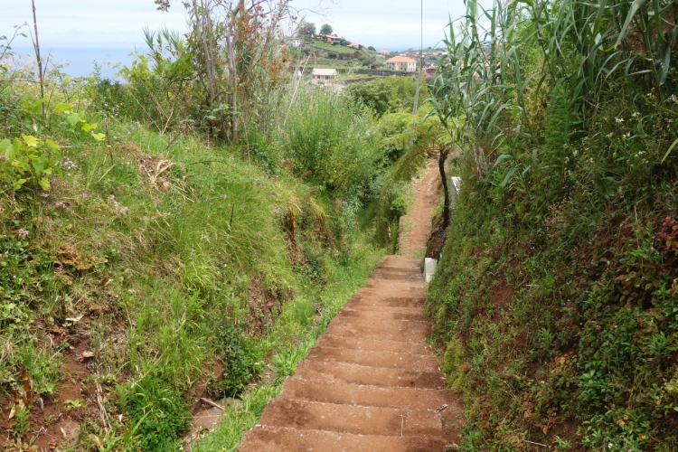 Über gefühlt mehrere Tausend Stufen ziehe ich aufwärts der letzten VS in Queimadas entgegen. Meter für Meter gewinne ich an Höhe. Der Zeitdruck ist zwar noch da, aber nicht mehr so drückend wie vor Ilha. Ich muss um 19.05 Uhr in Queimadas sein. Ich weiß, dass mich nach einem Aufstieg von gut 500 Hm noch eine längere Levadapassage erwartet, die aber gut zu laufen ist.