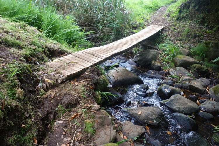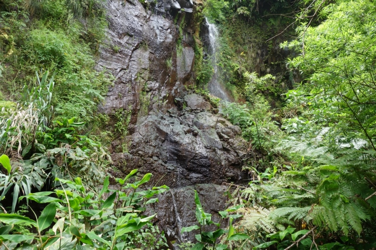 Der Weg nach Queimadas zieht sich und kommt mir länger als 4,5 Km vor. Liegt wahrscheinlich an meiner körperlichen Verfassung. Mental bin ich jedoch gut drauf. Ich bin mir sicher, den USM erfolgreich beenden zu können. Als ein Schmankerl dürfen wir noch durch einen Minitunnel laufen. Von der Seitenwand der Levada tropft es von mehreren Stellen herab, Brücken sind zu überqueren und es gibt sogar einen Wasserfall.