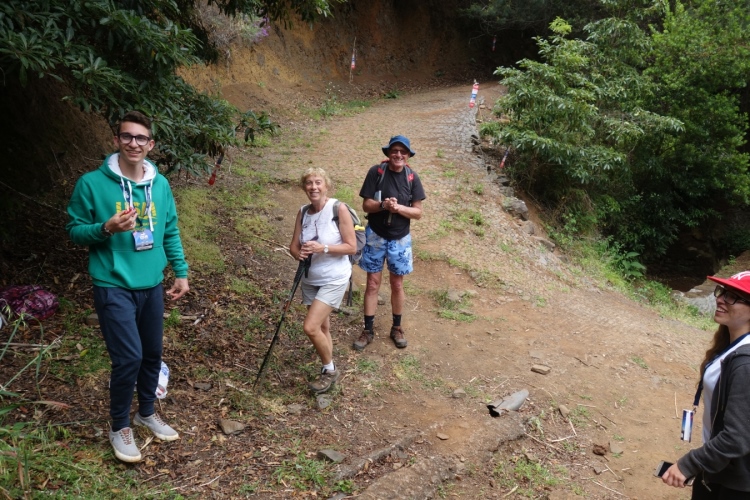 Aus luftiger Höhe blicke ich hinab auf die VS und werde von dort mit lauten Rufen angefeuert. Die Mädels geben wirklich Ihr Bestes, um mich die Serpentinen hinauf zu rufen. Endlich habe ich es geschafft und darf rechts abbiegen und entlang einer kleinen Levada laufen. Aber nicht lange.