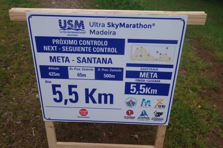 Nach 13.39 Stunden erreiche ich das Ziel in Santana und gehe die Stufen zur Ziellinie empor. Hier wurde am Morgen vor dem Start die Ausrüstung kontrolliert. Ich habe sogar noch ein Polster auf das maximale Zeitlimit von 15 Stunden von über einer ganzen Stunde. Geht also doch.