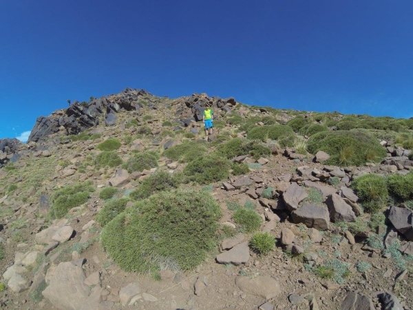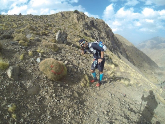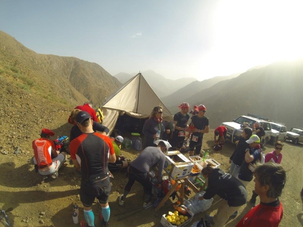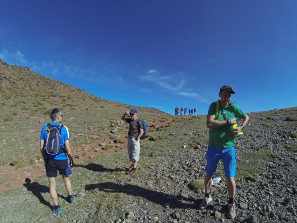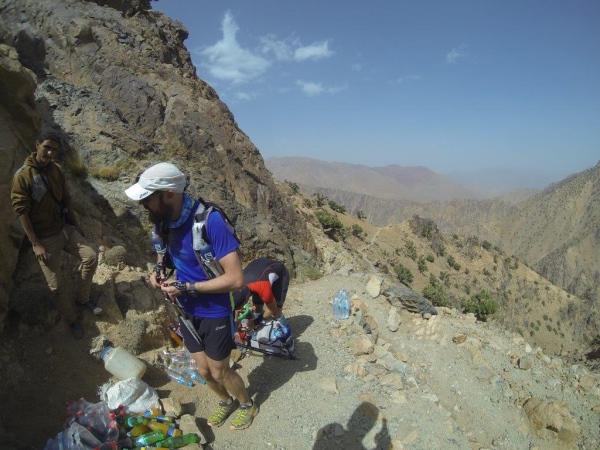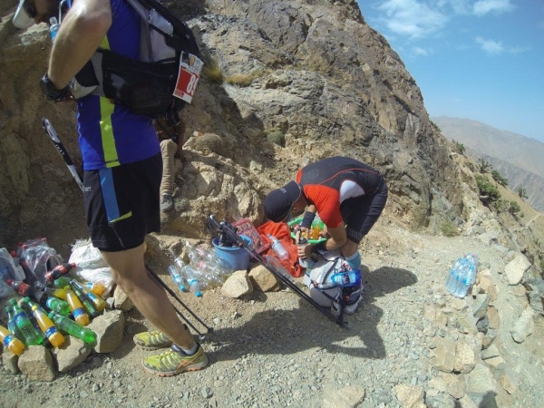 Über VP2 bei KM32 und 600mtr Downhill geht’s zum Schlussakkord auf den finalen Pass auf ca. 3000mtr bei KM37, ein Blick über die Schulter zeigt nochmals den gigantischen Hohen Atlas und das Dorf Imlil. Laufzeiten im Mittel von 8-9 Std lassen die Schwierigkeit des Marathon erahnen. Oder haben alle Läufer die Aussicht extrem genossen? Die ultraharten Läufer dürfen noch bis KM30 laufen um das erste Mal eine Verpflegung zu erhalten. Wasser und getrocknetes Obst oder Bananen. Tage zuvor wurde lange getüftelt, überlegt.