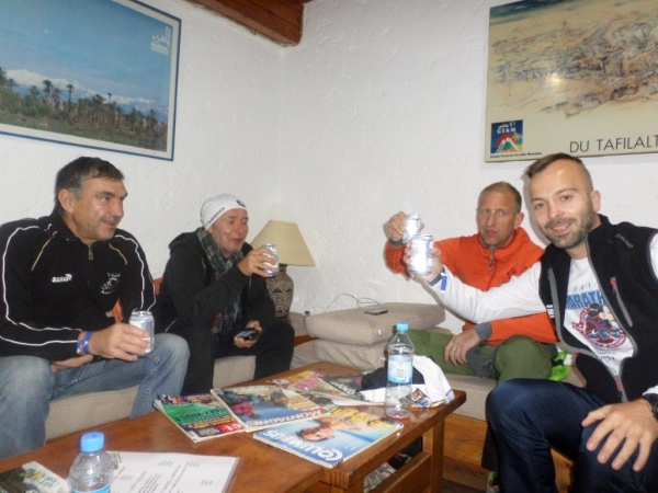 Mein Laufpartner erlebt das Abenteuer seines Lebens. Nach 2-3 Stunden Erholung bei PC5, wandert er mit dem Besenwagen-Läufer zu PC6, übernachtet dort ca. 3 Std und baut am nächsten Morgen die Verpflegungsstelle 6 ab. Maultiere, Berber kennenlernen, Wanderung bei Tageslicht über 3600mtr nach Imlil kommen ihm wie ein Traum vor. Bekanntschaften, visuelle Begegnungen mit Land, Leute und Landschaft werden ihm unvergesslich bleiben. Per Taxi geht’s für ihn zurück – Ankunft nach ca. 37 Std – ein Laufabenteuer eben, auf die andere Art und Weise, aber prägend und im Nachhinein schön.