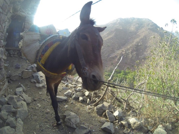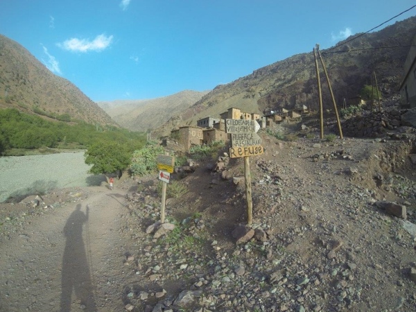 Rasant verlieren wir an Höhe und werden in eine andere Welt katapultiert. In die der Berberdörfer. Die Welt der großen, staunenden Kinderaugen. High-Five oder nicht high-five mit den Kids. Das ist die persönliche Frage jedes Einzelnen bei den Hygieneverhältnissen. Wie hat es jemand auf FB passend geschrieben: Linke Hand zum Essen, rechte Hand zum Po. Der Kilometer 19 empfängt uns mit den Markierungsschildern 42km-blau rechts / 105km-rosarot links ab. Der Marathon nimmt nun rasant an Fahrt auf. Oder soll man sagen: „Es wird rasant langsamer“.