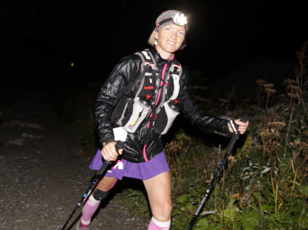 Zunächst steigt der Weg weiter an, dann geht es kurz über die Hochfläche und dann bergab. Über Les Esserts (km 68, 1640 m) erreichen wir Vallorcine (km 70, 1260 m). „Chapeau,“ rufen die Mädels und weisen uns den Weg in die Halle. Über eine halbe Stunde halten wir uns auf, dann nehmen wir die restlichen 16 Kilometer in Angriff.