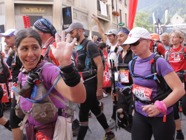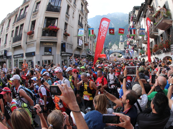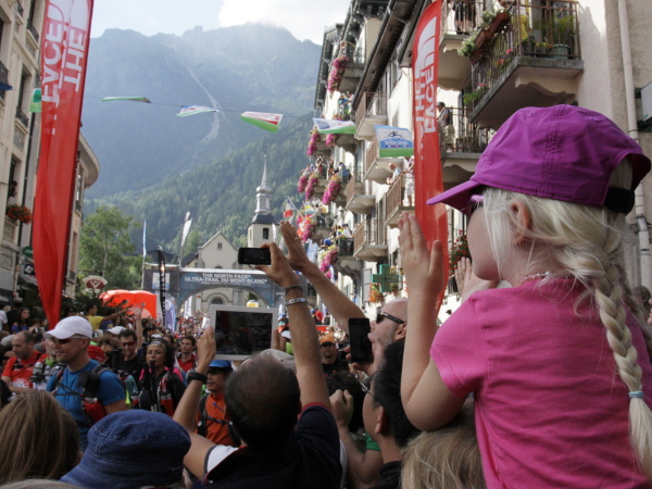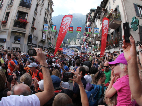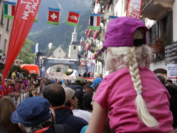 Endlich, mit fast neun Minuten Verspätung werden wir losgelassen. Läufer und Zuschauer jubeln sich zu. Die Stimmung und die Atmosphäre sind einmalig. Der ganze Ort steht dieses Wochenende im Zeichen des Rennens um den Mont Blanc. Wir laufen eine Schleife durch die engen Straßen und genießen die Bewunderung, die die vielen Menschen uns gegenüber zum Ausdruck bringen.