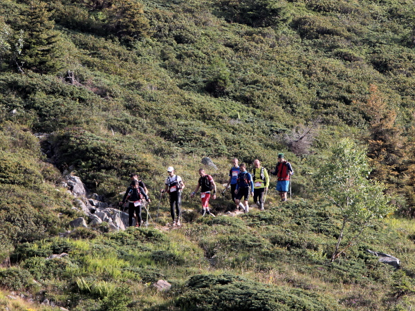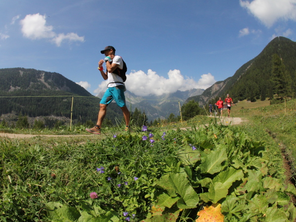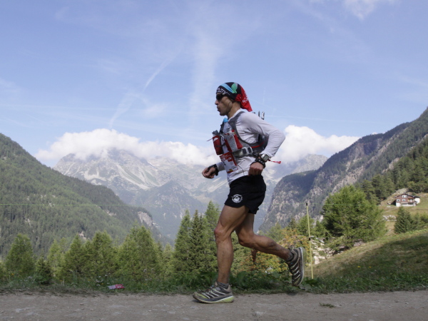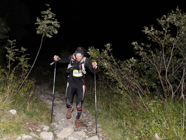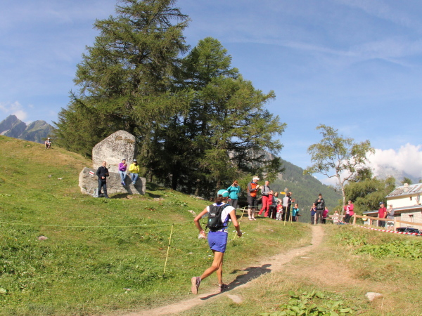 Obwohl ich einen ziemlich großen Teil des folgenden Streckenabschnittes im Laufschritt zurücklege, brauche ich durch etliche Anstiege zwischendurch für die sieben Kilometer zum Ref. Bonatti (km 12, 2020 m) fast zwei Stunden. Es wird schon klar, weshalb der Veranstalter das Mitführen von Eigenverpflegung zur Pflicht macht.