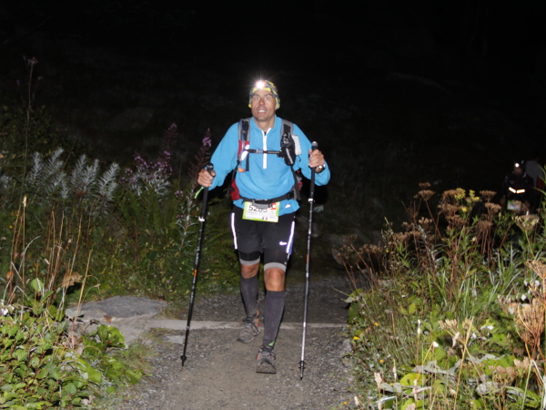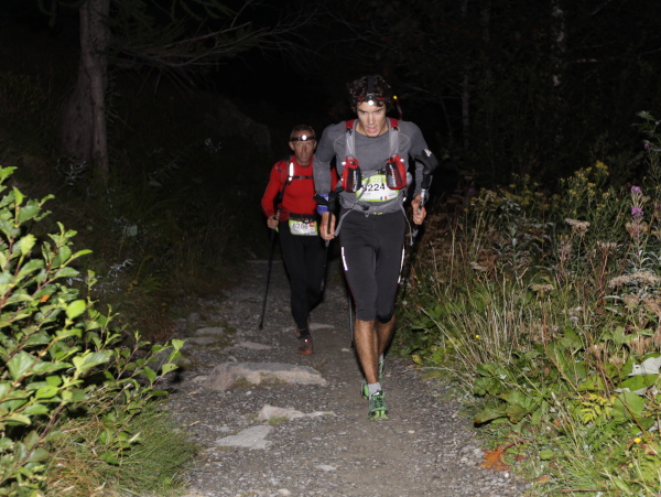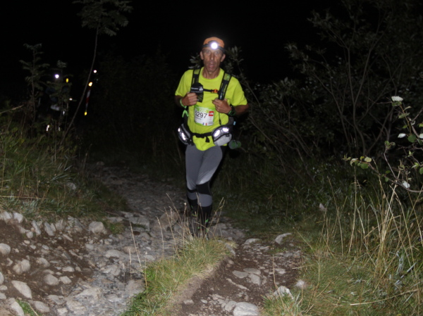 Optimistisch ziehen wir nach 20 Minuten Pause wieder los. Der Weg ist gut und auch nicht extrem steil, kein Vergleich zum Anstieg nach Bovine. Trotzdem bleiben wir hin und wieder stehen, atmen durch, trinken und gehen weiter. Ohne Probleme erreichen wir nach 70 Minuten das kleine Verpflegungszelt bei Les Tseppes (km 63, 1932 m). Kaffee wird zu meinem Lieblingsgetränk diese Nacht. Es ist nicht sehr gemütlich hier und überanstrengt haben wir uns auch nicht. Also machen wir uns nach 10 Minuten wieder auf den Weg.
