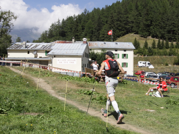 Wir erreichen Arnuva und werden dort von vielen Schaulustigen und Wanderern lautstark begrüßt. Die Verpflegung lässt keine Wünsche offen. Stärkung ist jetzt angebracht, auf den nächsten 4 Kilometern zum Grand Col Ferret, dem höchsten Punkt der gesamten Strecke, sind fast 800 Höhenmeter zu bewältigen.