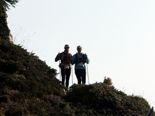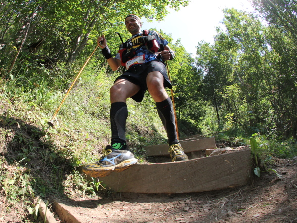 Um 15.30 Uhr machen wir uns auf den Weg. Eberhard und ich hatten uns ausgerechnet, vor Einbruch der Dunkelheit An- und Abstieg bewältigt zu haben. Das sollte uns gelingen, wir liegen gut in der Zeit. Zunächst steigt es ganz gemütlich an, dann werden die Passagen immer steiler und ruppiger. Fast senkrechte Felsabhänge und wackelige Brücken werden passiert. Ich stelle mir vor, diesen Berg bewältigen zu müssen, nachdem ich bereits 90 Kilometer hinter mir habe. Das ist nämlich die Aufgabe der Kollegen auf der 158 km langen Strecke. Ich schließe aus, das jemals zu wagen und steige zufrieden mit meiner Entscheidung weiter aufwärts.