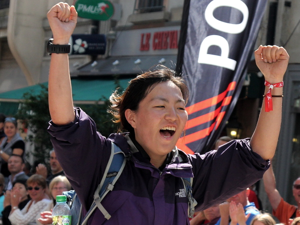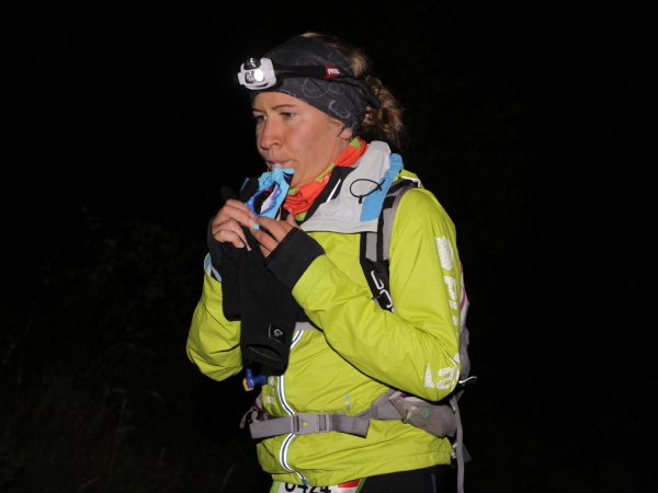 Es ist schon dunkel, als Karine Herry aus Frankreich als erste Frau den Lauf nach 25:22:20 Stunden beendete. Sie unterbietet damit die Vorjahres-Siegeszeit von Lizzy Hawker, die als eine der Ersten gratuliert, um über 1 ½ Stunden.